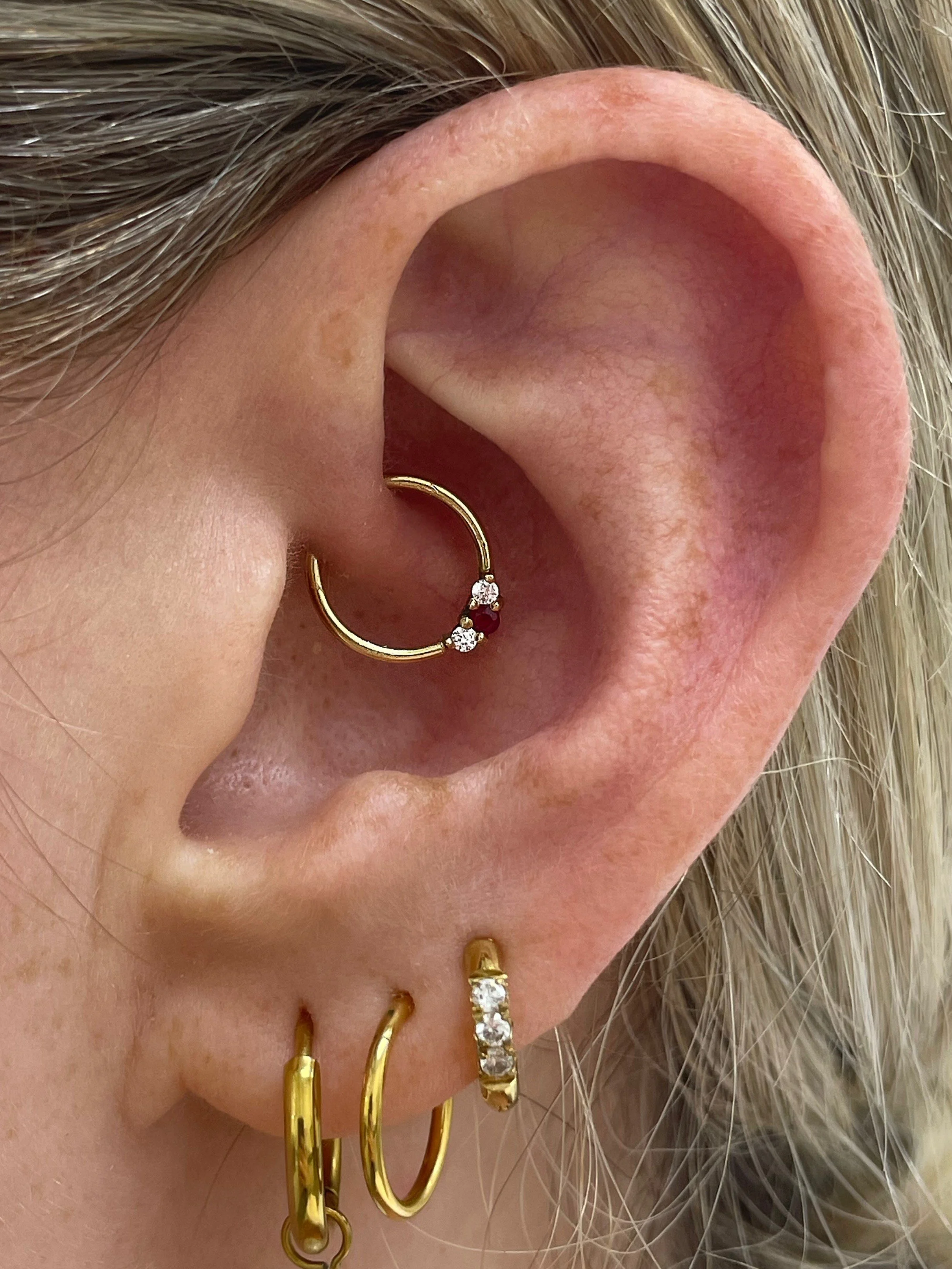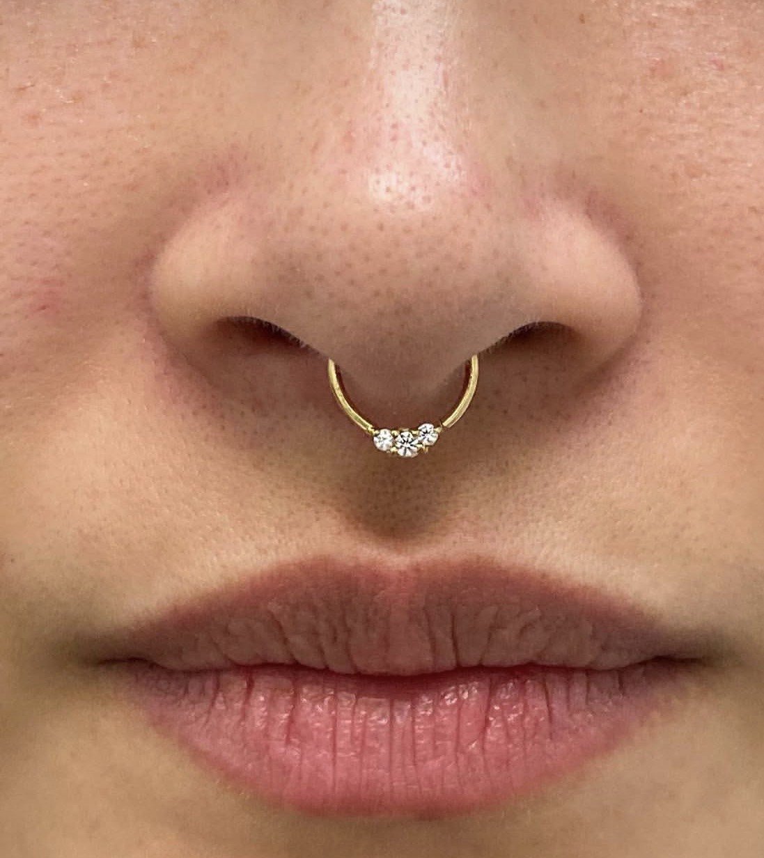 Amara captures the beauty of three delicate stones are set along a gentle curve, creating a graceful flow that complements the natural shape of the ear or septum. Its soft sparkle and fluid design make it a timeless piece.