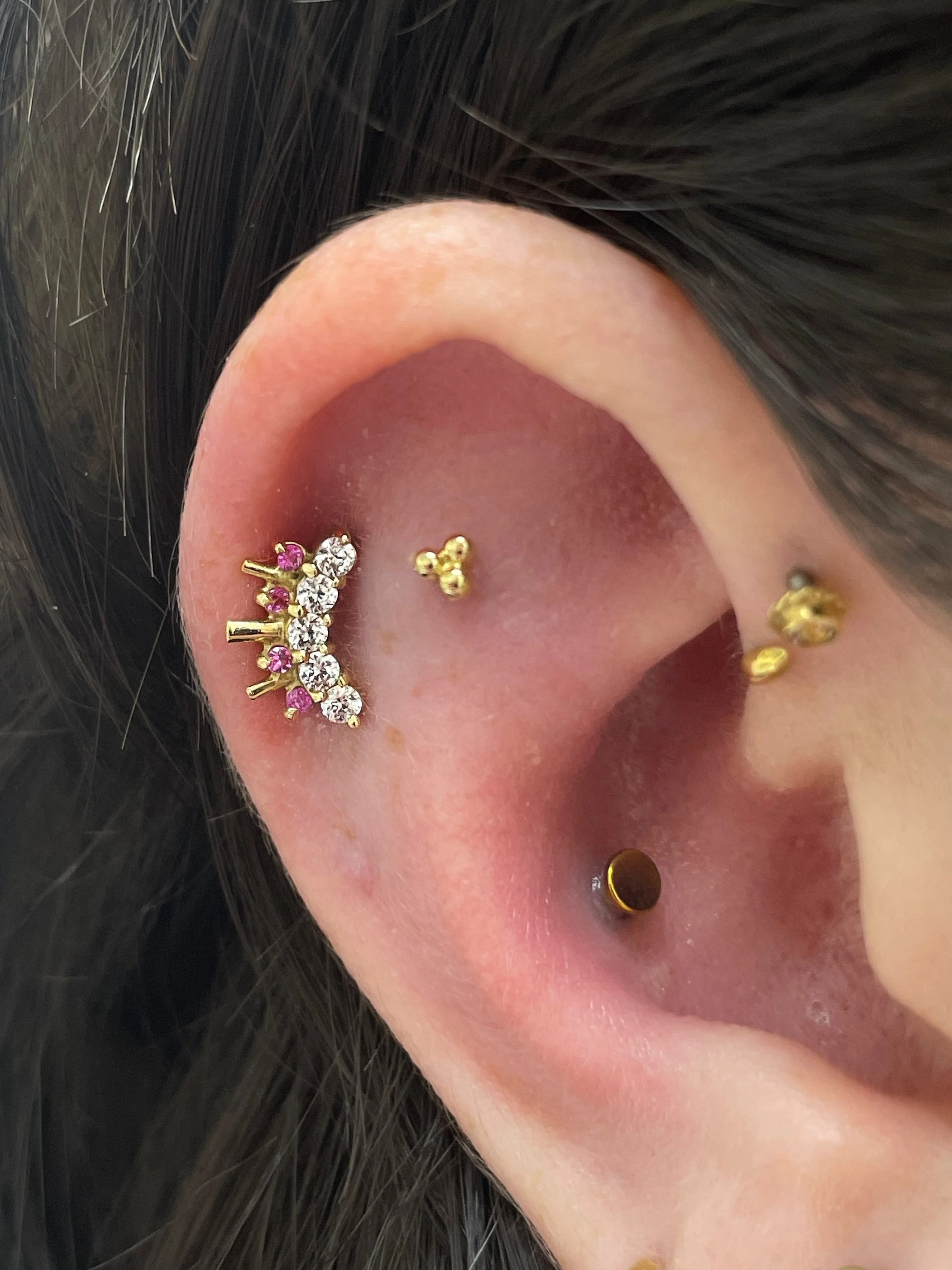 Who doesn’t love perfectly curated piercings?! We will work with your style preferences and anatomy and help you come up with your dream piercing design! If you are after a curation by us please contact us in advance and we will sort out a time that is suitable. This way we will have the time to give you and your curation the time and attention it deserves!