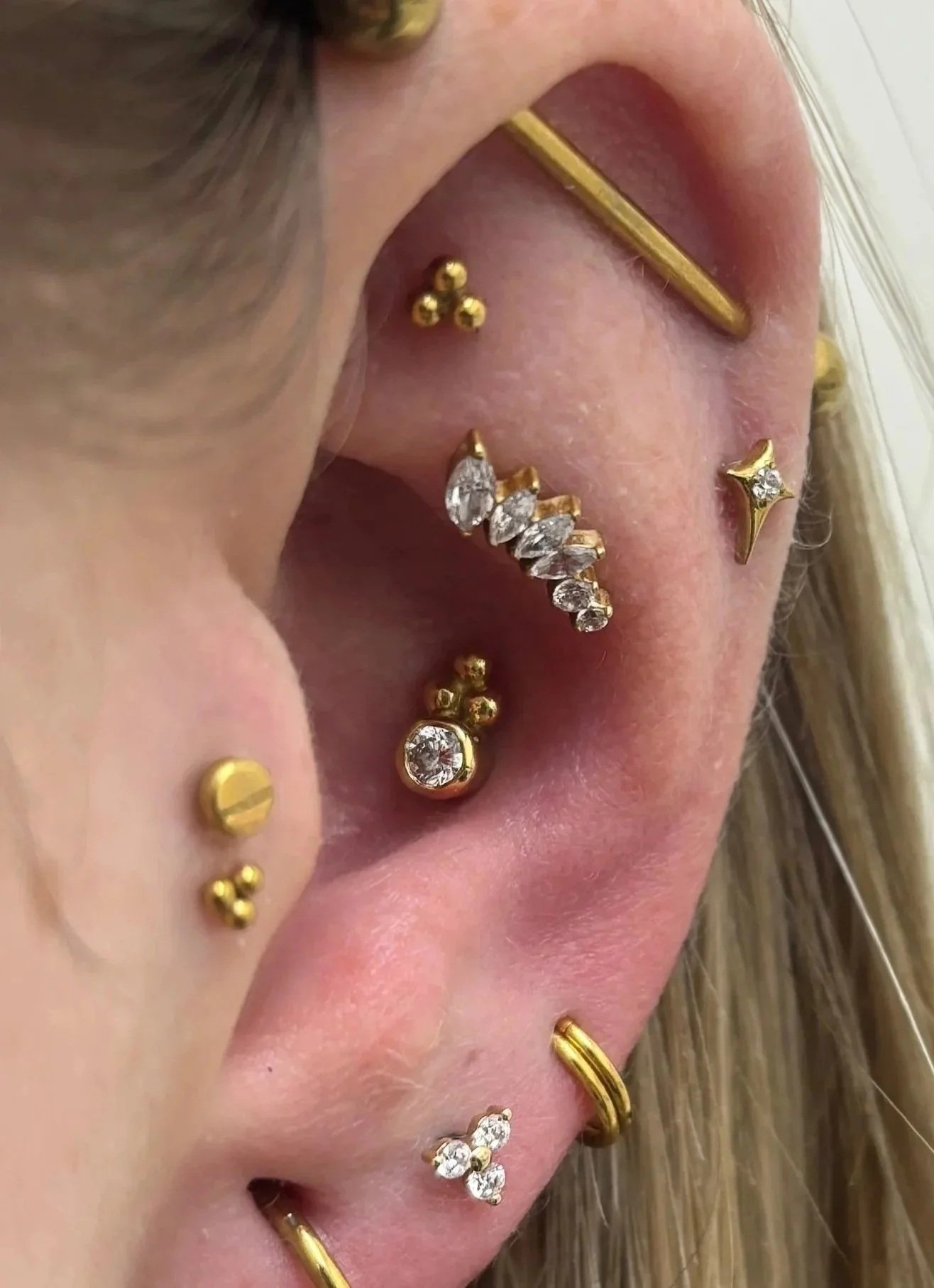 Best Suited in Conch. Nostril, Helix, Flat or Lobe Piercing
